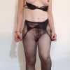 INDOSSO UN PAIO DI COLLANT A RETE NERE CON RIGA POSTERIORE E FIOCCHETTO ALLE CAVIGLIE.